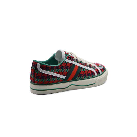 Gucci Cotton Wool Web Houndstooth Interlockin Sneakers Woman GG-1 Red