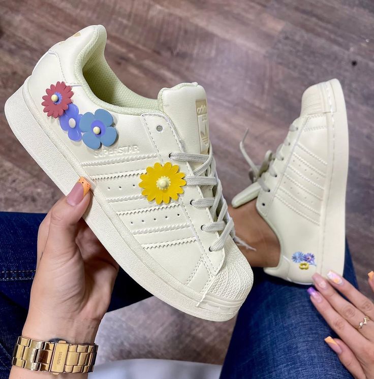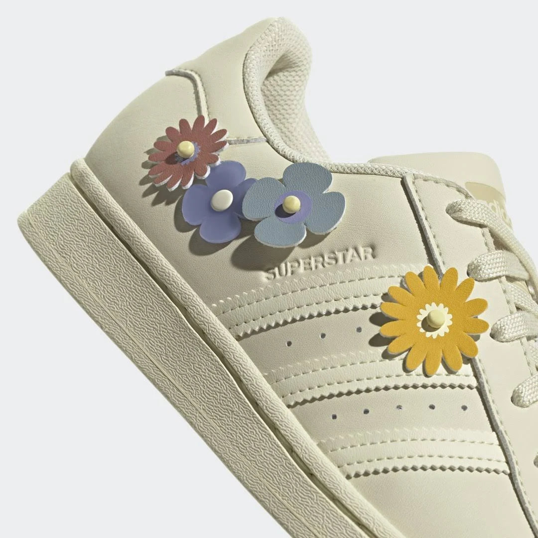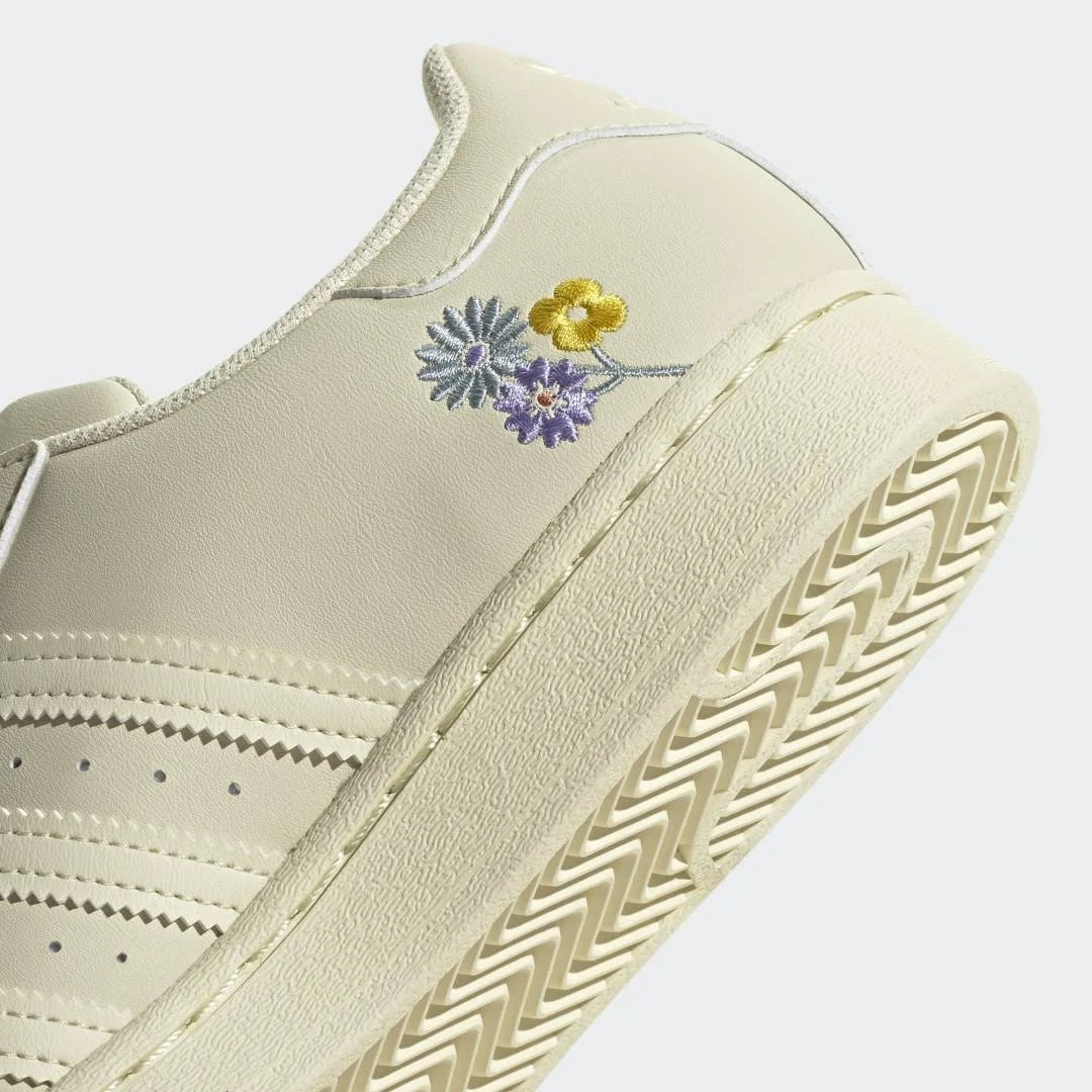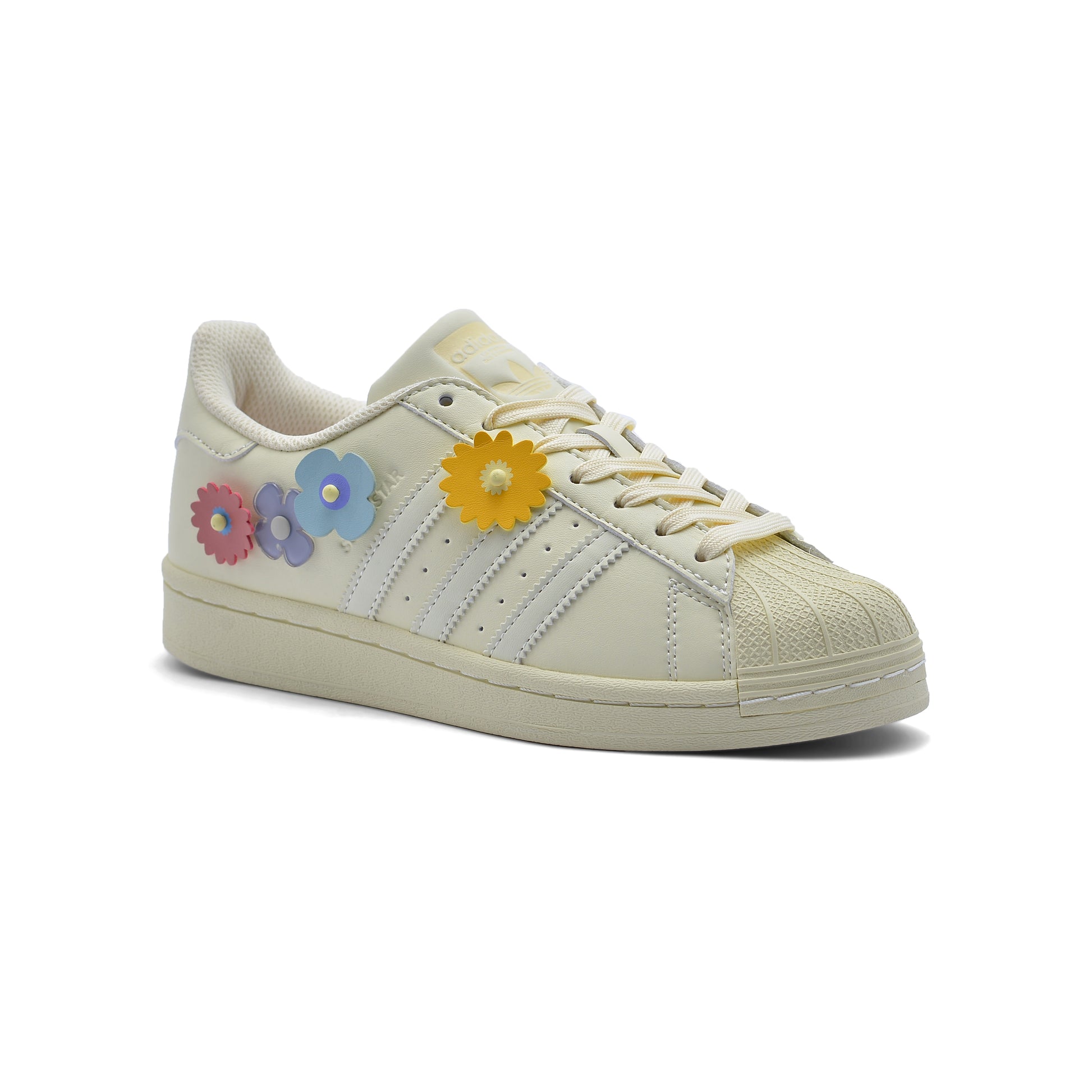 حذاء أديداس سوبر ستار نسائي مزين بالزهور GX2171 بيج