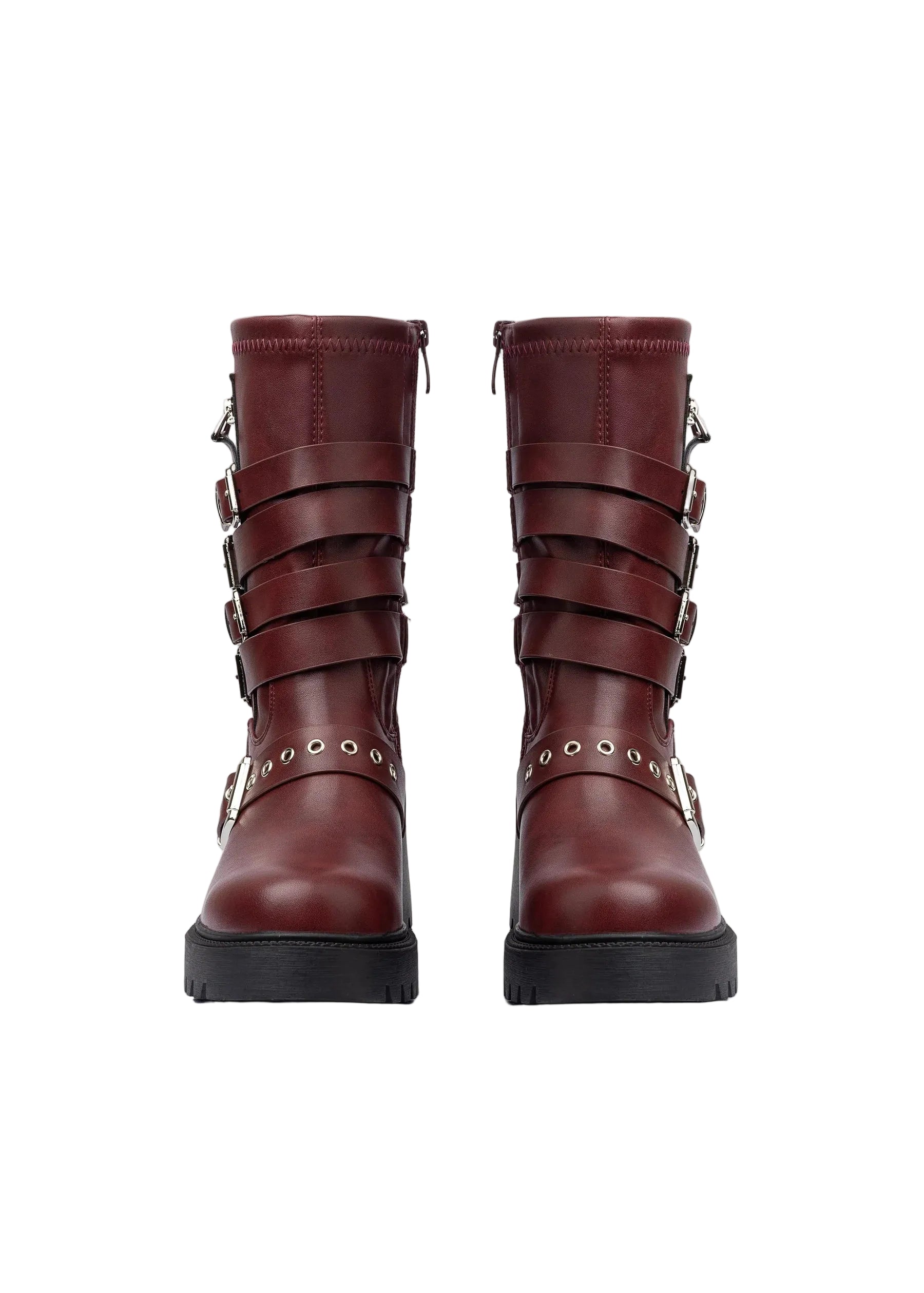 Atlas Buckle Combat Half Boots High Quality with Buckle Detail Woman 125000H07 Burgundy