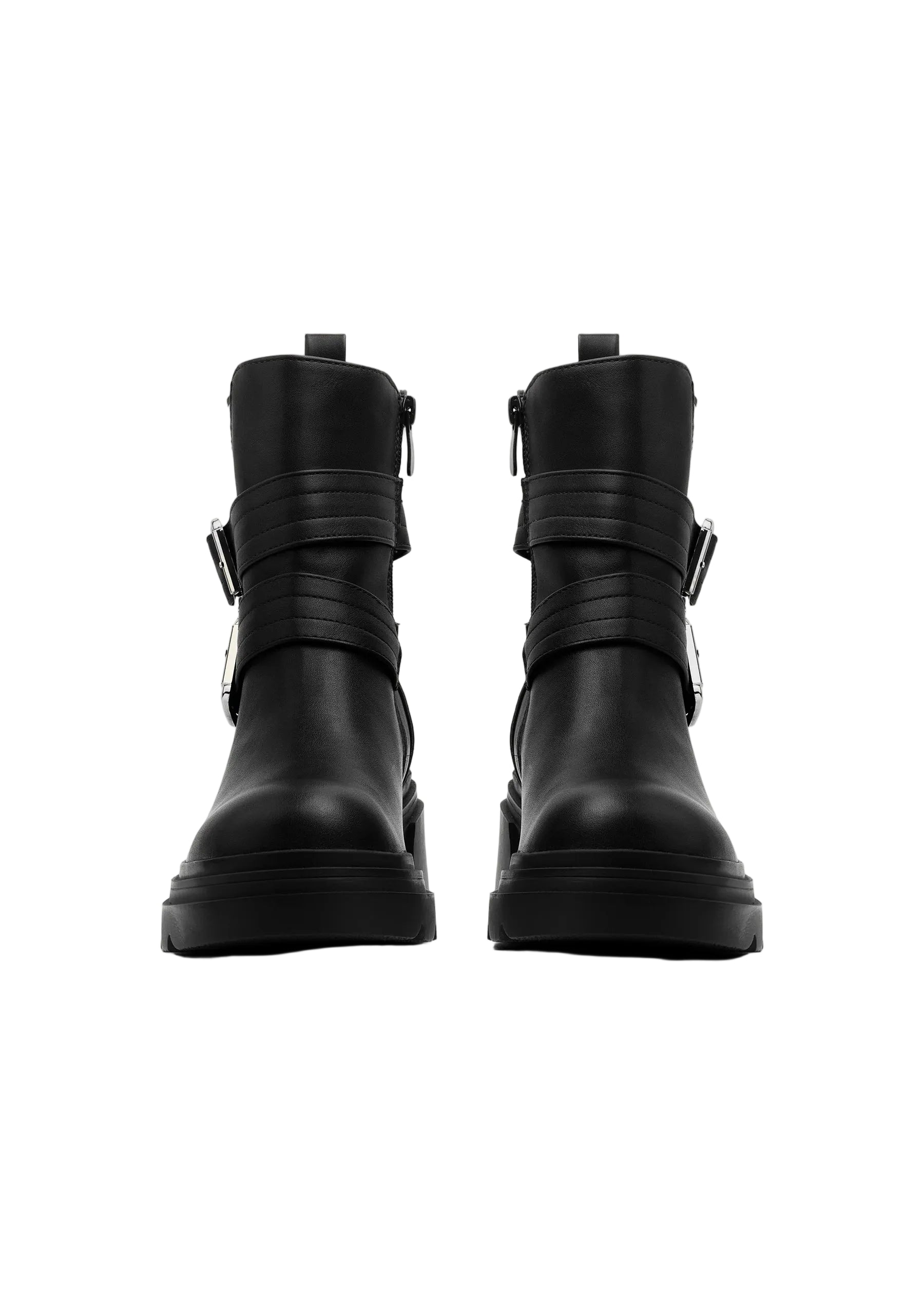 Atlas Buckle Combat Half Boots deliver tactical style with refined craftsmanship. These women's boots feature distinctive buckle detailing that elevates the classic combat silhouette, combining edgy aesthetics with practical durability. The half-boot cut offers versatile styling options, transitioning seamlessly from casual to statement-making looks. Constructed with premium materials, they provide reliable support and longevity. The sleek black finish pairs effortlessly with any wardrobe, making these boots an essential investment for those seeking quality footwear with character and substance.
