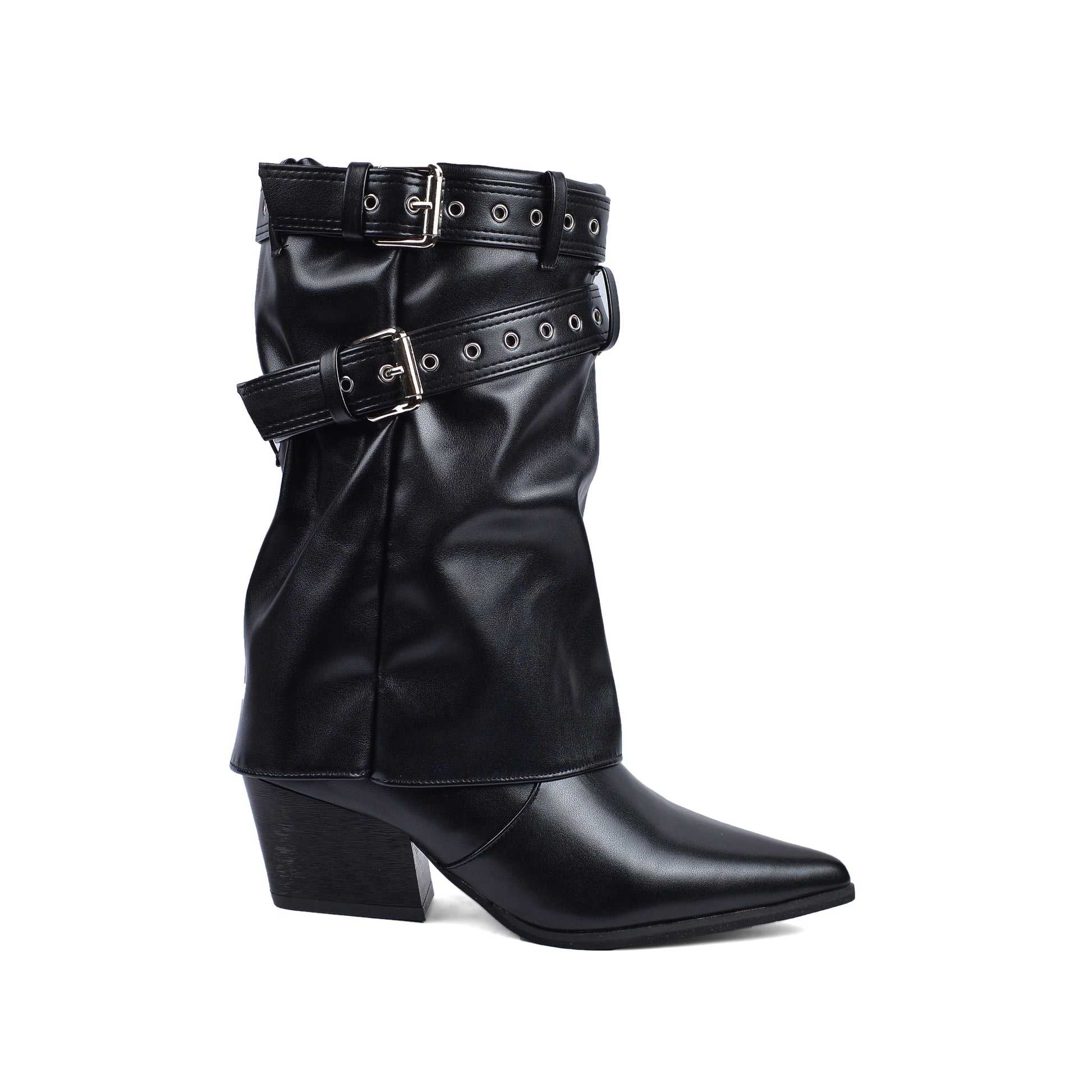 Dial Belt Heel Half Boots High Quality with Buckle Detail Woman DA07 Black