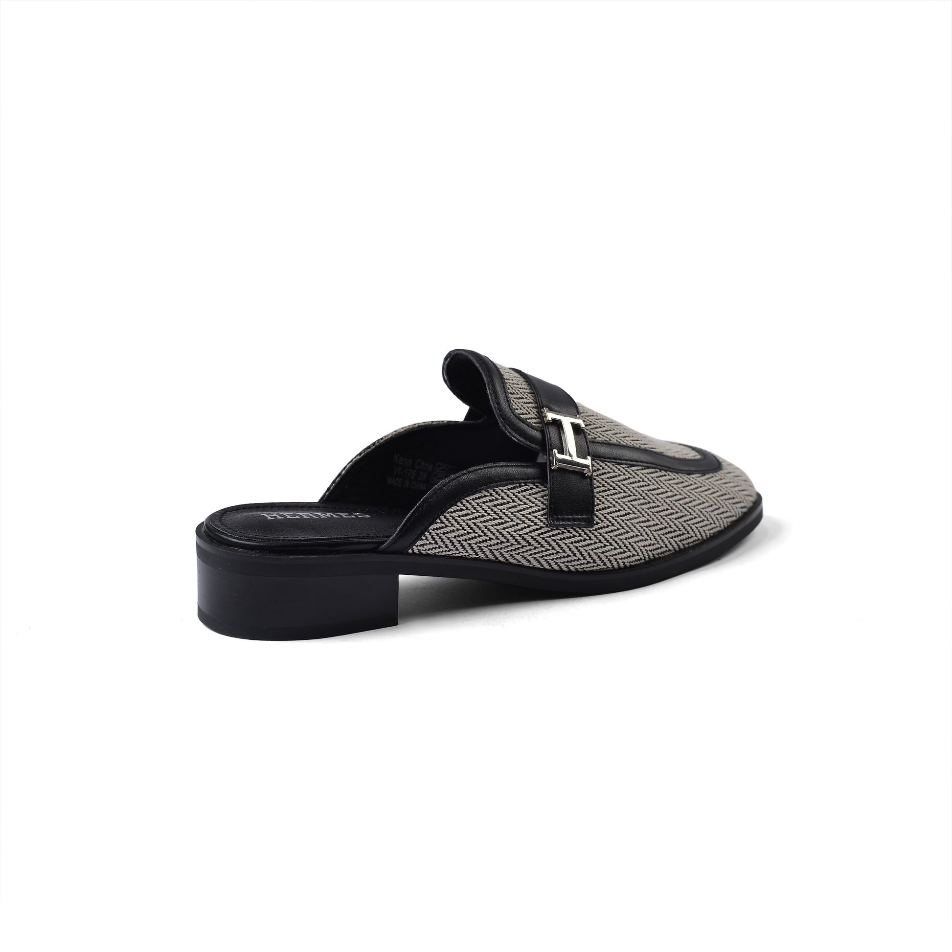 Hermes Flat Open Back Loafer Fur Slipper Luxury Woman VI-176 Black