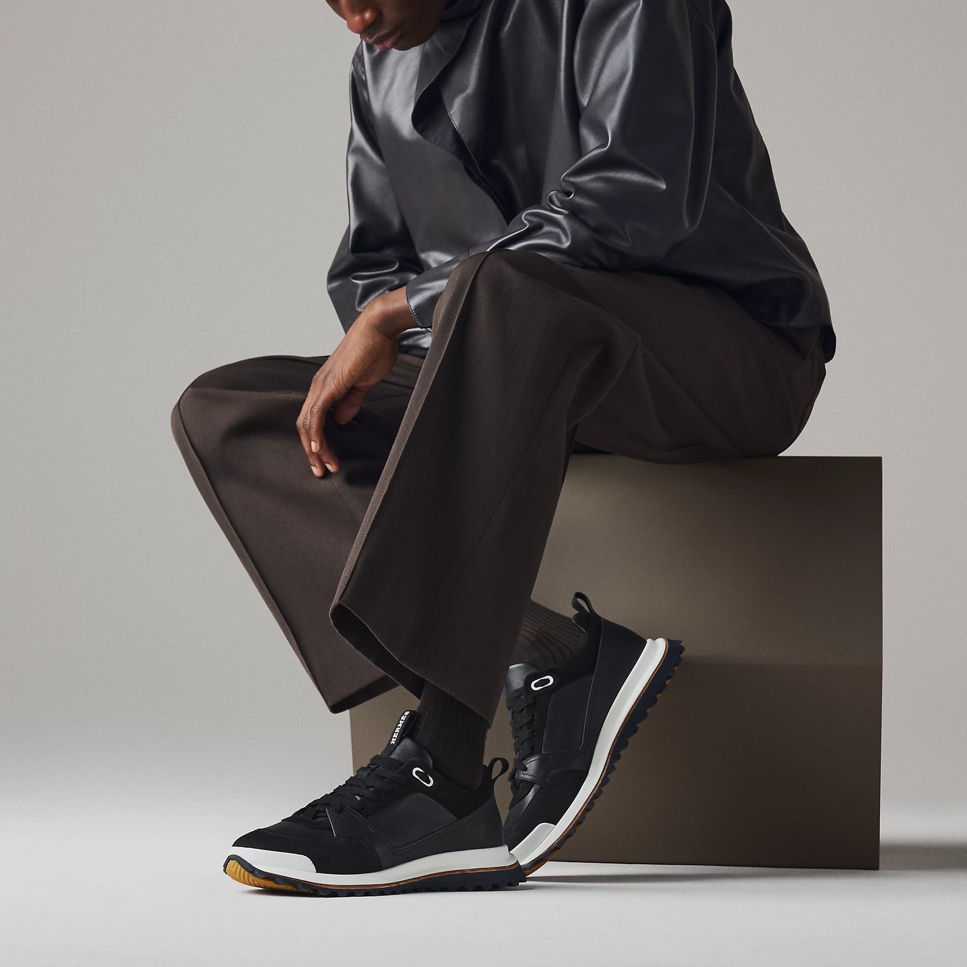 Elevate your sneaker collection with the HERMES Leather Top Houses Champion the Aesthetic Sneakers in Black. Crafted with premium leather construction, these men's sneakers deliver sophisticated style without compromising on comfort. The LA009 model features a refined aesthetic that seamlessly transitions from casual outings to elevated streetwear looks. Built with quality materials and expert craftsmanship, these sneakers provide durability and timeless appeal. Perfect for the discerning gentleman seeking footwear that balances contemporary design with enduring elegance.