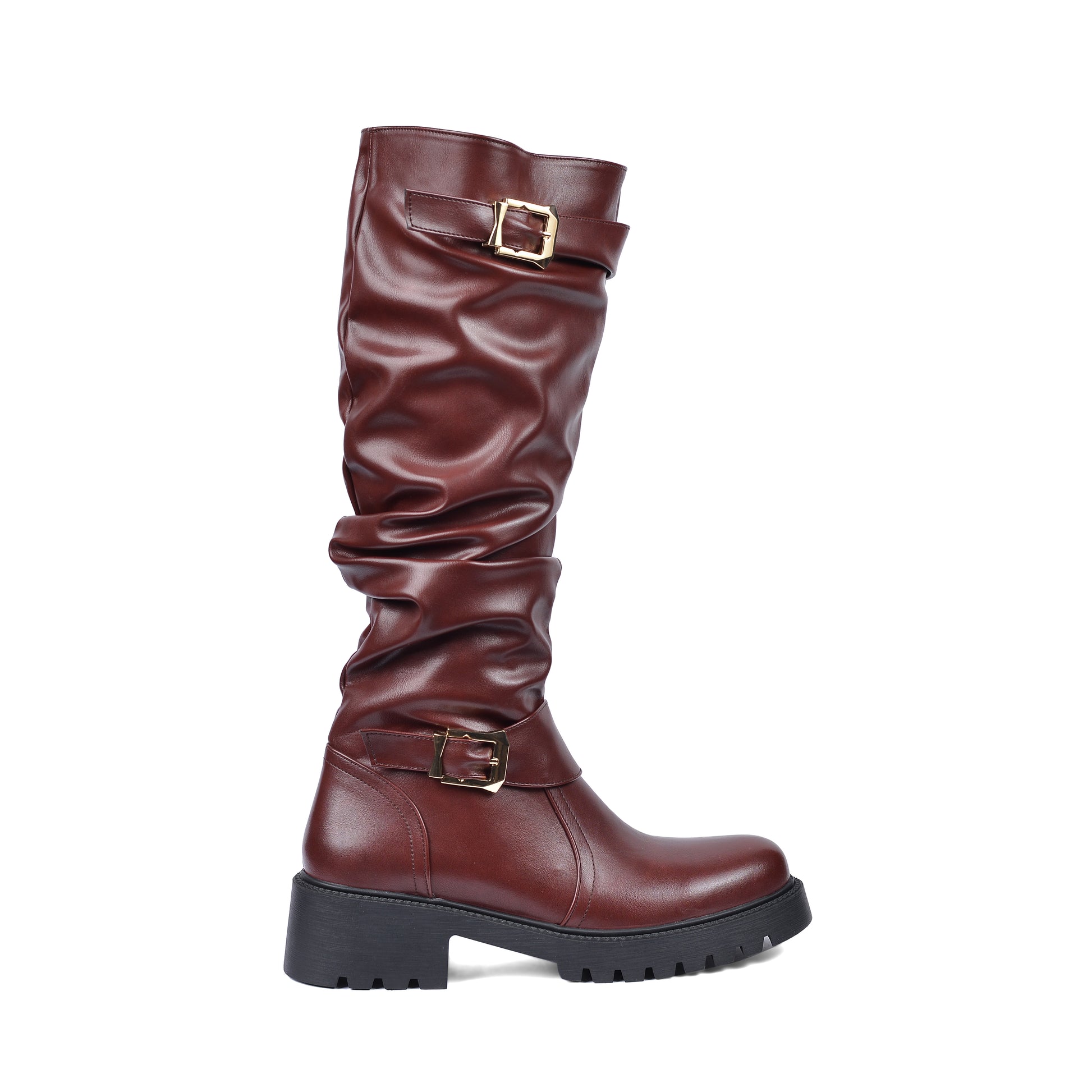 High Quality Design Tan Classic Boots with Buckle Detail 101261506 Burgundy