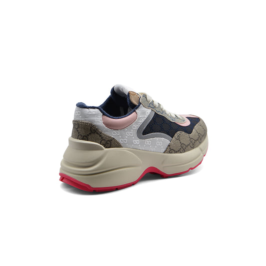 Gucci Supreme Monogram Mix Rhyton Sneakers Woman 20188-1 Beige&Pink