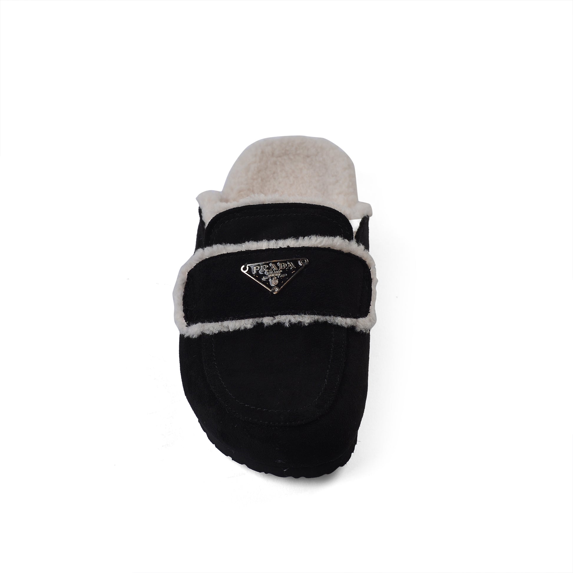PRADA's VK-112 reimagines the classic loafer as an effortless luxury slipper. Crafted with sumptuous fur detailing and an open-back silhouette, this flat delivers sophisticated comfort for the discerning woman. The streamlined loafer profile pairs seamlessly with casual and refined wardrobes alike, while premium materials ensure lasting elegance. A statement piece that bridges indoor ease with polished style.