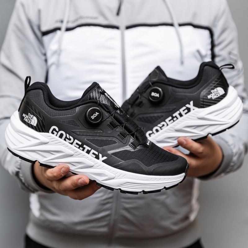 The North Face GTX Gore-Tex Trail Running Sneakers deliver professional-grade performance for serious trail athletes. Engineered with Gore-Tex waterproof technology, these sneakers keep your feet dry in wet conditions while maintaining breathability during intense runs. The aggressive tread pattern provides superior grip on variable terrain, from rocky paths to muddy trails. Built with responsive cushioning and a reinforced toe cap, they offer both comfort and durability for extended trail sessions. The classic black and white colorway complements any athletic wardrobe while the lightweight construction ensures minimal fatigue over long distances.