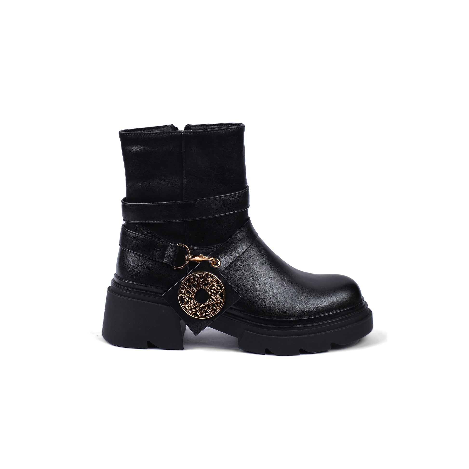 Orion Ringed Heeled Half Boots High Quality with Buckle Detail Woman 17726AH6 Black