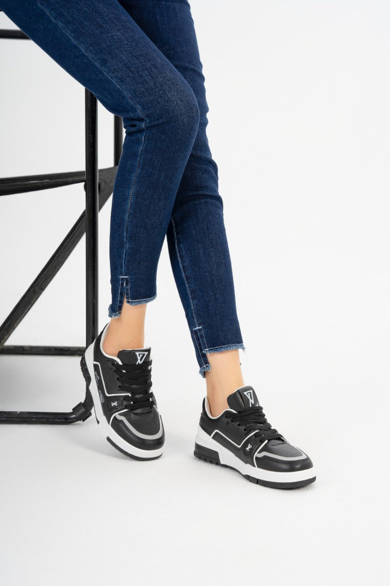 These black sneakers for women, W-14, boast a stylish design and comfortable fit. Crafted with durable materials and superior craftsmanship, these sneakers provide long-lasting support for your feet. Perfect for any casual outfit, these sneakers add a touch of sophistication to your wardrobe.